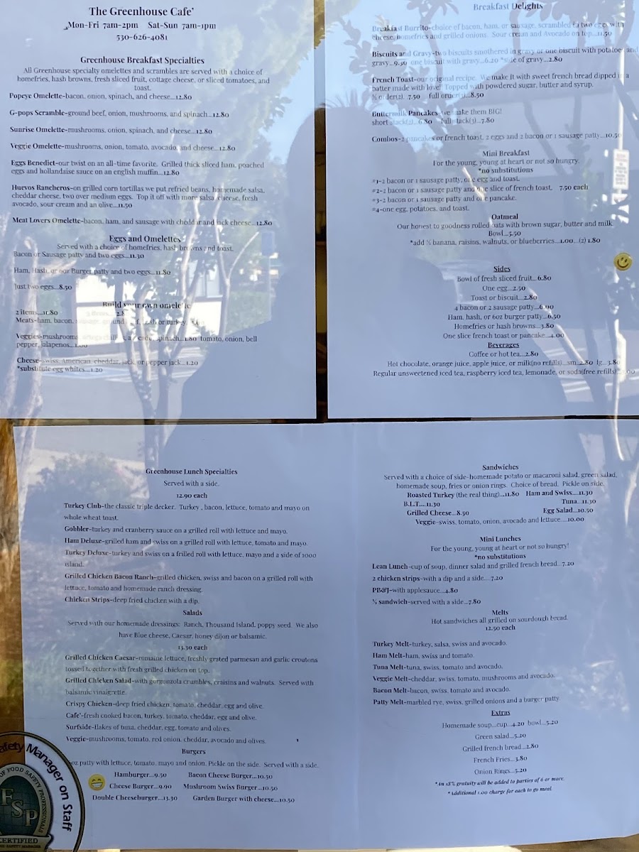 Greenhouse Cafe, located at 2864 Ray Lawyer Dr in Placerville, is a charming spot that exudes warmth and community spirit. Owned by a former dishwasher turned owner, this café prides itself on clean surroundings, friendly service, and deliciously satisfying meals. Its breakfast specialties, like the Popeye Omelette and fluffy pancakes, have garnered rave reviews for their generous portions and delightful flavors. Lunch options include mouthwatering sandwiches and fresh salads, ensuring there's something for everyone. Diners appreciate the reasonable prices and a welcoming atmosphere that makes you feel like part of the family—truly a hidden gem worth exploring!
